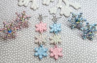 These are SO PRETTY!!! I make these out of clay so they're VERY lightweight! The studs are about the size of a quarter and they are GLORIOUS. I bling those out with glass AB rhinestones and they have stainless steel posts. The dangles have stainless steel star studs!